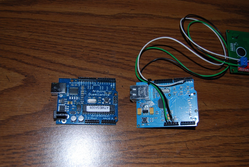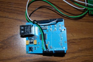 Now I just took the Ethernet Shield and stacked it on top of the Arduino Board.