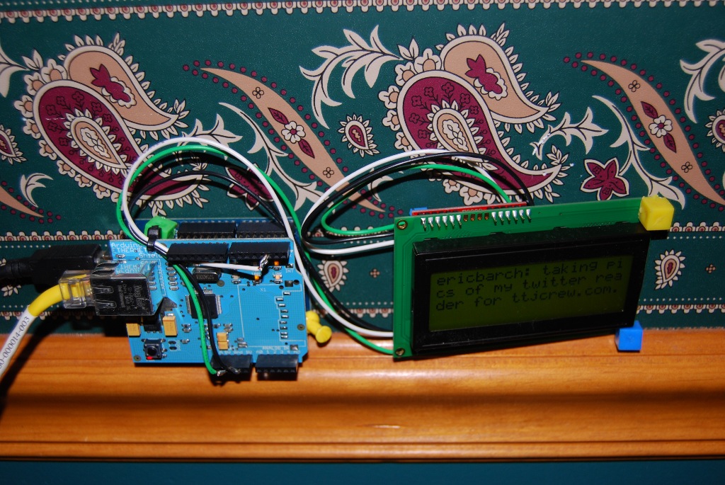 Here is my Arduino sketch I wrote for the twitter display: eTwitterLCD3.pde